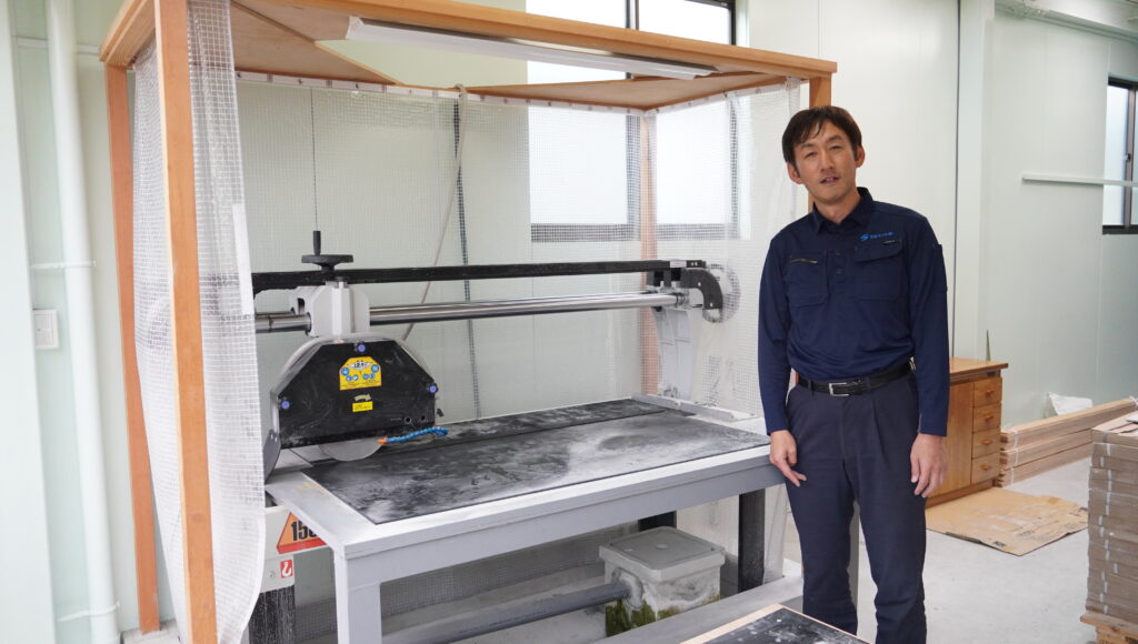 タイル加工への進出には場所(工場)と設備(機械)が要ります。投資費用もそれなりに必要になりますので、なかなか踏ん切りのつかない状態でしたが、補助金の活用で、現実のものにすることができました。事業の新しい展開の1つのステップを踏み出せた感じです。自社でいつでもタイルを加工できることにより、より柔軟に業務を進めることができるようになりました。