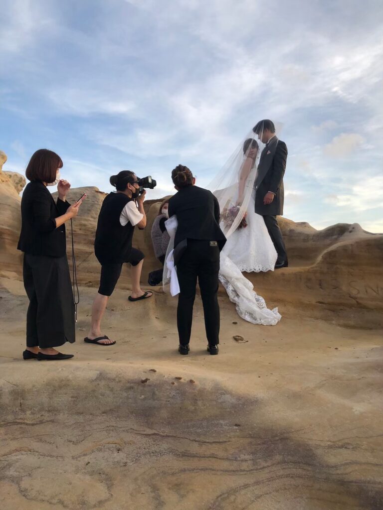 2020年からのコロナの影響で、お客様が激減。とともに、結婚式の需要も大幅に減ってしまった。結婚式場やレンタル衣装屋さんもずいぶん潰れてしまいました。そんなタイミングでフォトウェディングが台頭してきました。フォトウェディングは韓国で盛んです。特徴はクオリティの高さ。これは、僕ら(美容師)に向いているのではないかと感じました。私は写真撮影もしていたし、もともと職業柄デザイン系のものも得意です。これはいけるんじゃないかとやり始めました。